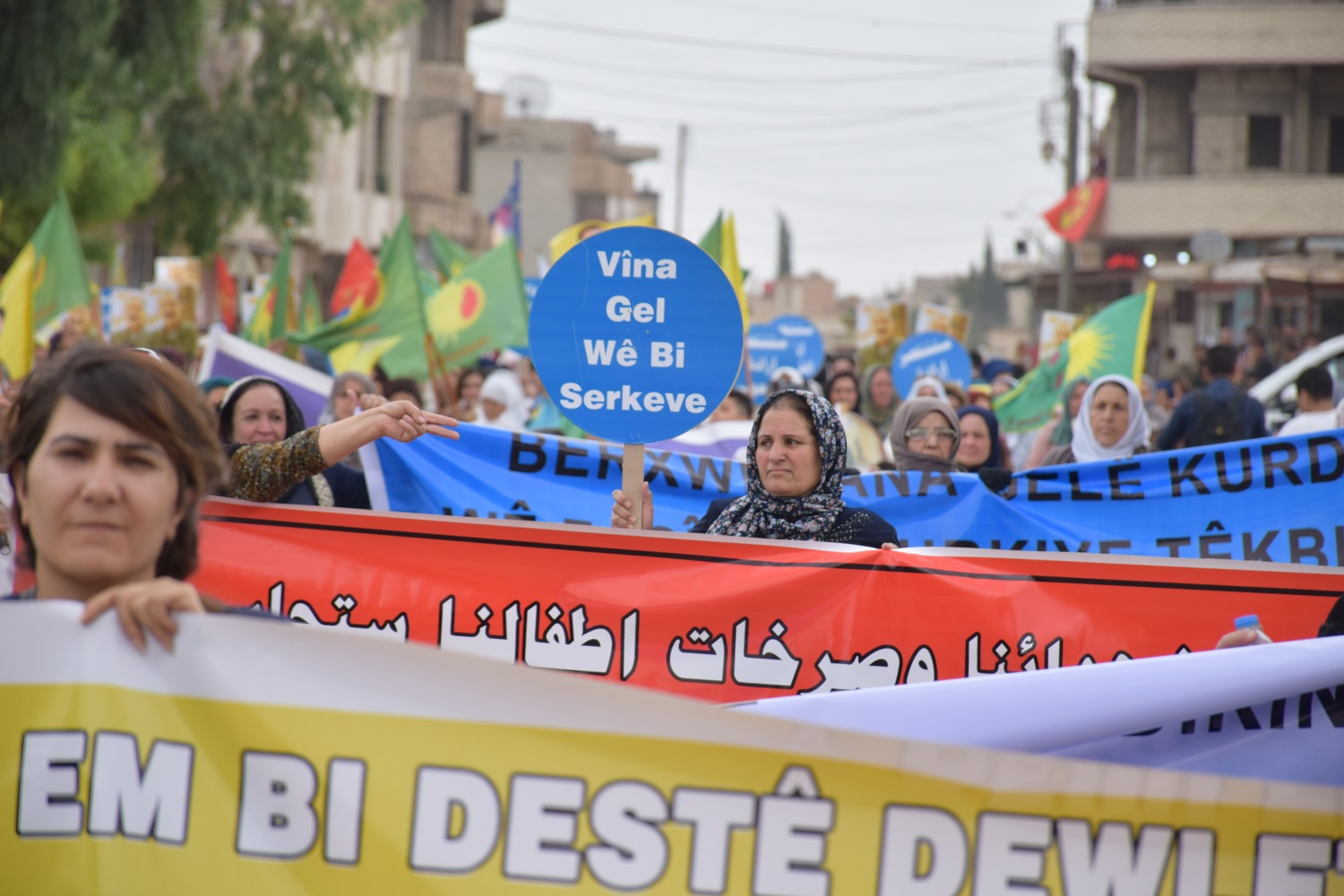 La marcha llegó frente al edificio del Movimiento Revolucionario Juvenil. Hablando allí el miembro del Consejo General del PYD, Silêman Ereb, dijo que el estado turco está tratando de evitar la unidad nacional kurda, pero aseguró que no tendrán éxito.